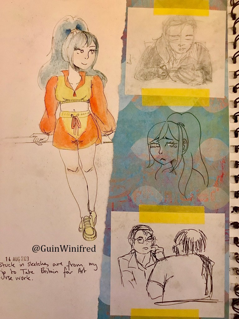 Here’s another collage of old drawings (except for the main picture). This time all of the drawings are of my persona – her ears are meant to be bat ears but I think it’s missing something. This was also inspired by some pins on Pinterest. I think if I were to redraw this I would redo the hands as they look a bit floppy. I also found that the notes app is a great for scanning pictures.